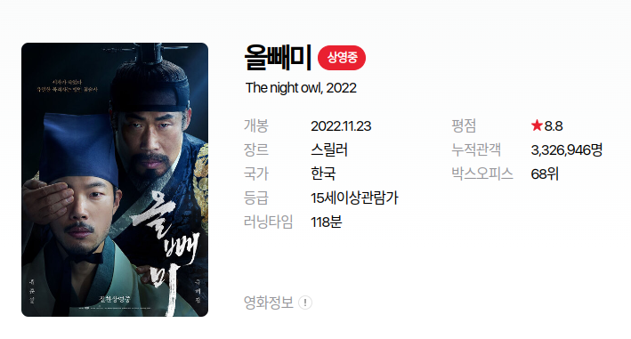영화 "올빼미" 정보 출연진 평점 등장인물 결말 리뷰