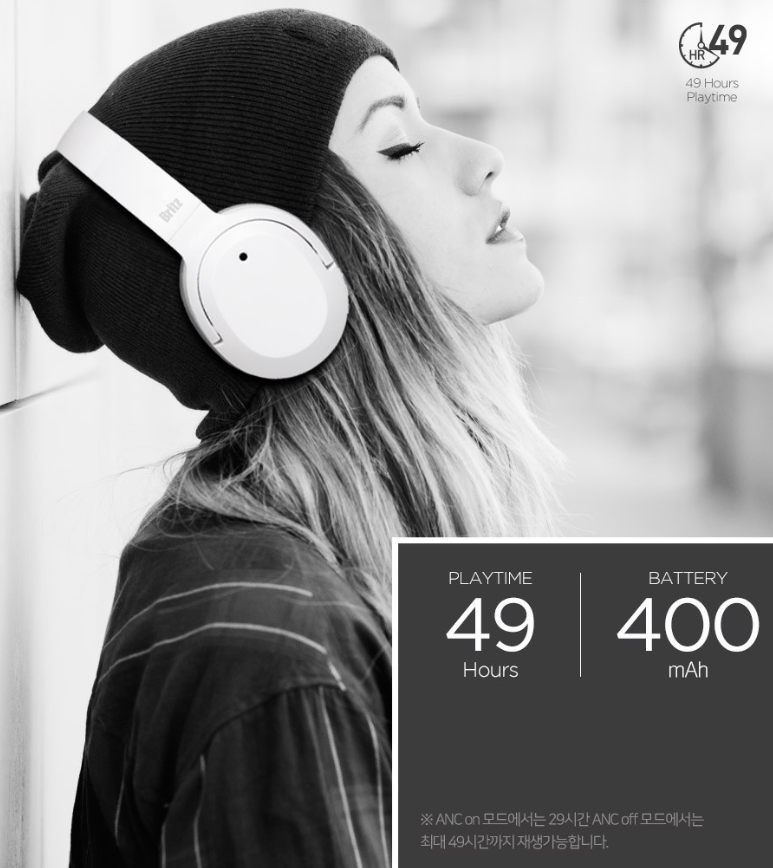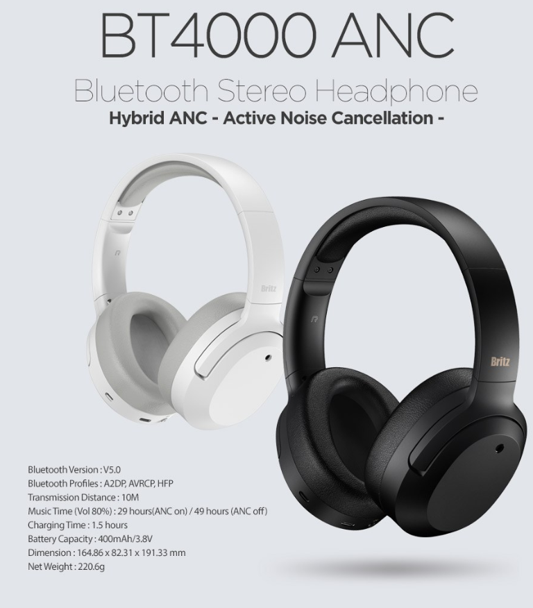 브리츠 BT 4000 ANC 모델은 최대 38dB까지 소음을 주려주는 하이브리드 ANC 기술이 탑재된게 특징인데요, 영화 감상이나 음악감상에 최적화된 음질로 소음을 줄여줍니다.