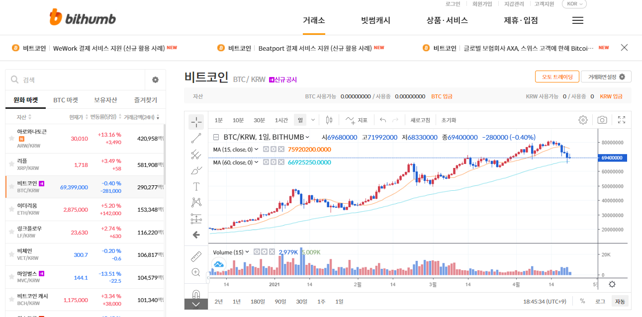 있다. 빗썸이 조금은 더 많은 코인 거래를