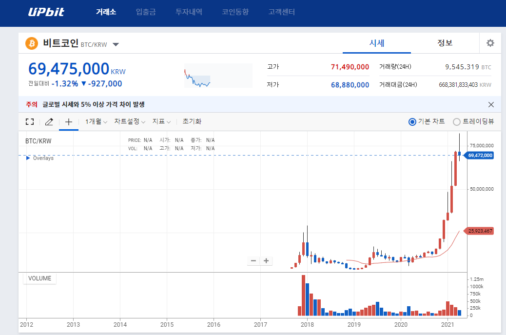 국내/국내 거래소간 가격도 다르다.
