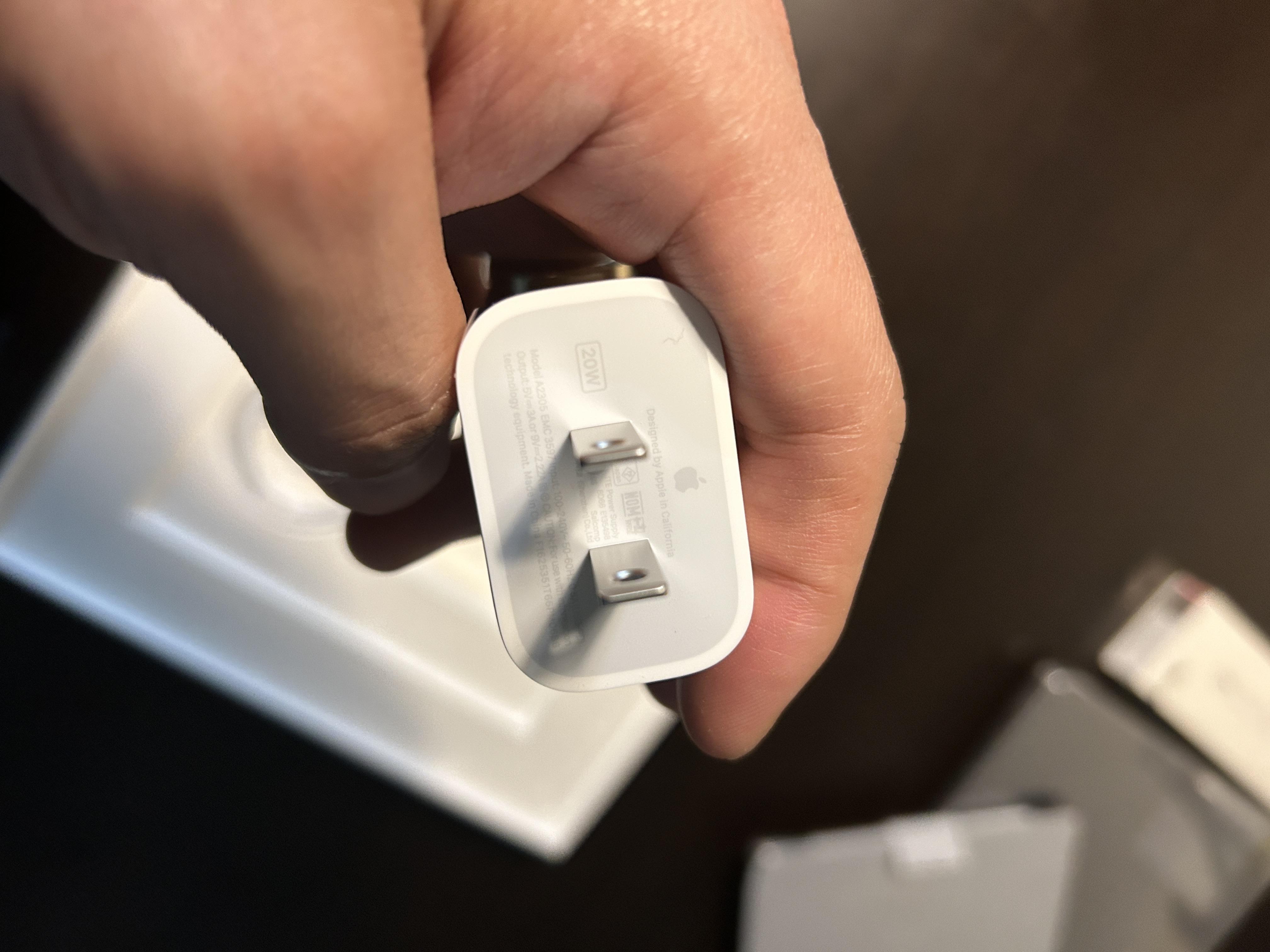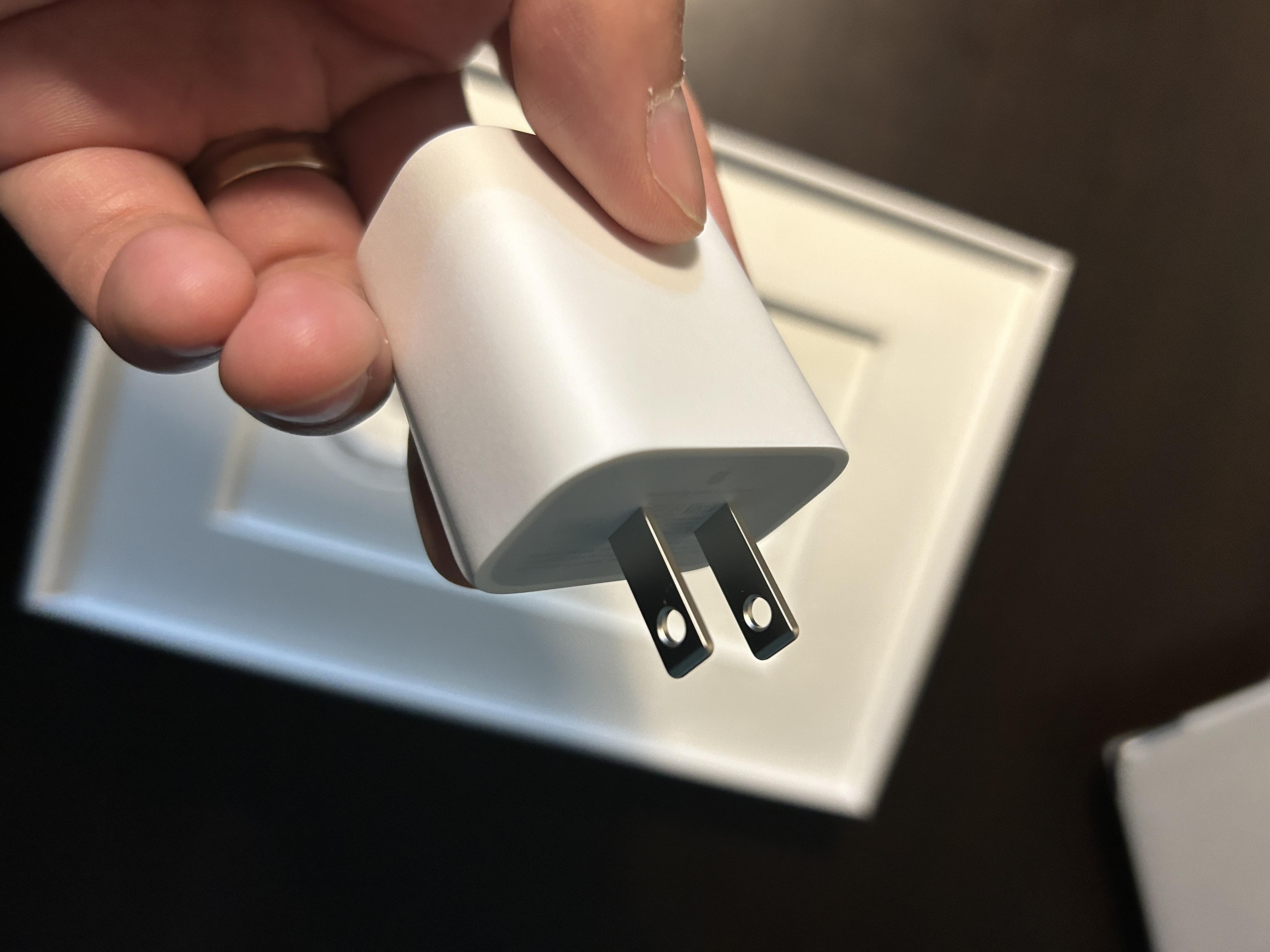 설명서 박스를 들어보니 어댑터가 들어있다. 아이폰 살 때는 없었는데 아이패드에는 들어있음. 총 20W 규격의 어댑터다. 충전하면 1시간만에 완충되는 것 같다. 이제는 역사로 사라질 것 같은 라이트닝 8핀 충전기 선도 함께다.