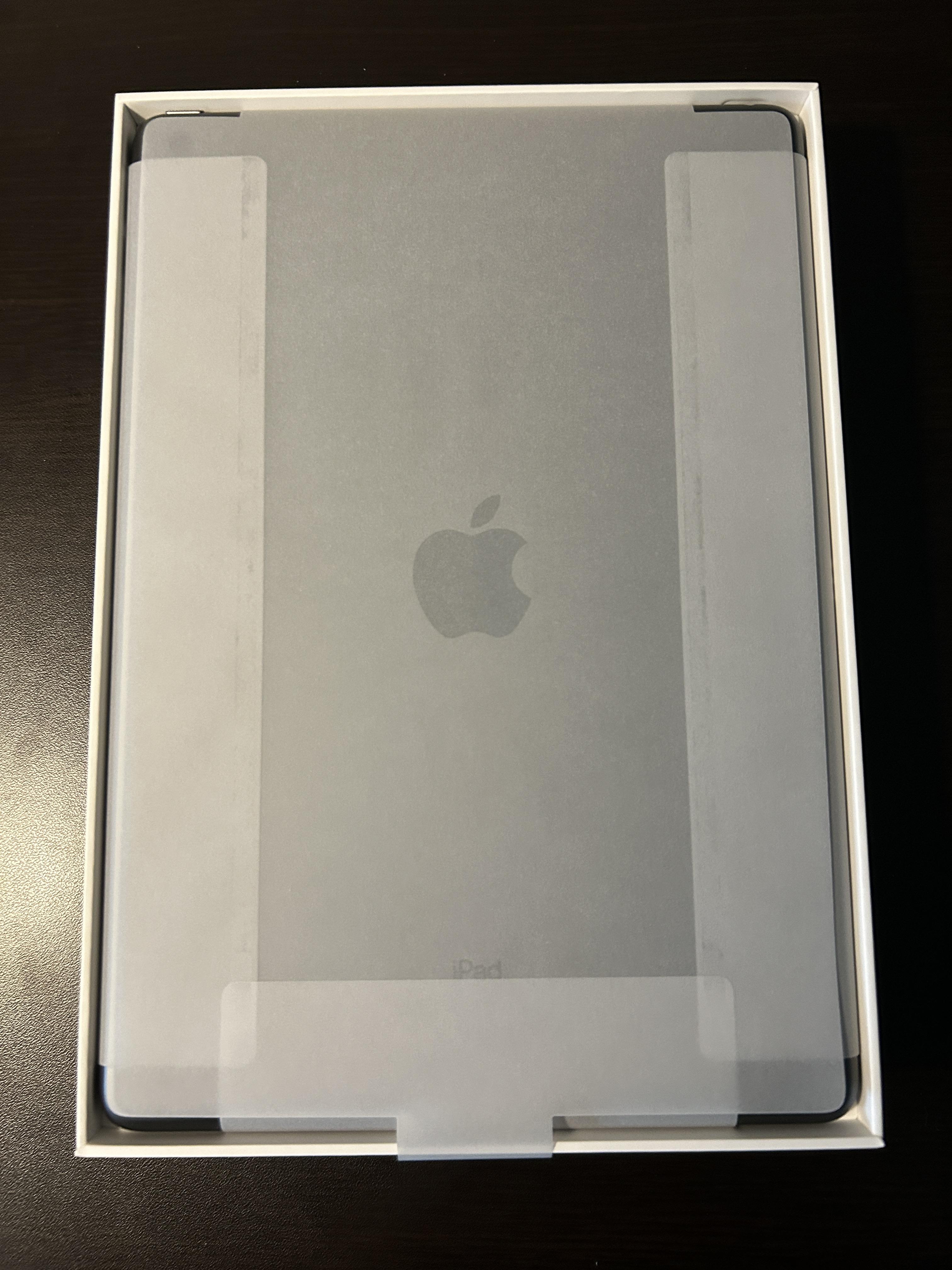 박스를 열면 아이패드가 대기타고 있다. 비닐에 감춰진 아이패드 9세대 스페이스 그레이. 조심조심 꺼내기 시작한다.