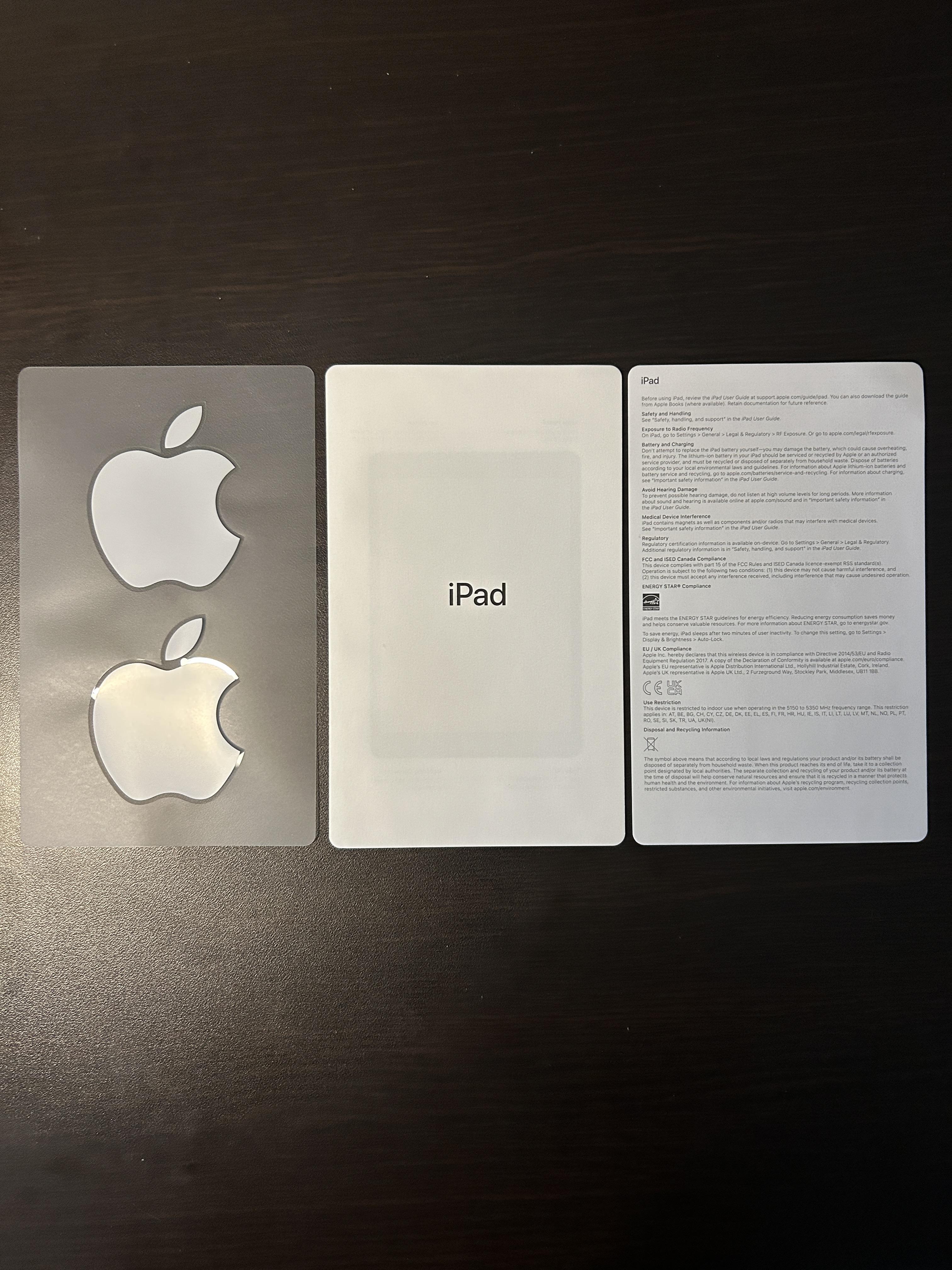 아이패드 9세대 액세서리는 간단하다. 설명서 그리고 왜 주는지 모르겠는 애플 로고 스티커 까지 얇은 박스에 들어있음. 애플 로고 스티커는 다들 어디에 쓰시나요? 댓글로 적어주세요 ㅋㅋ