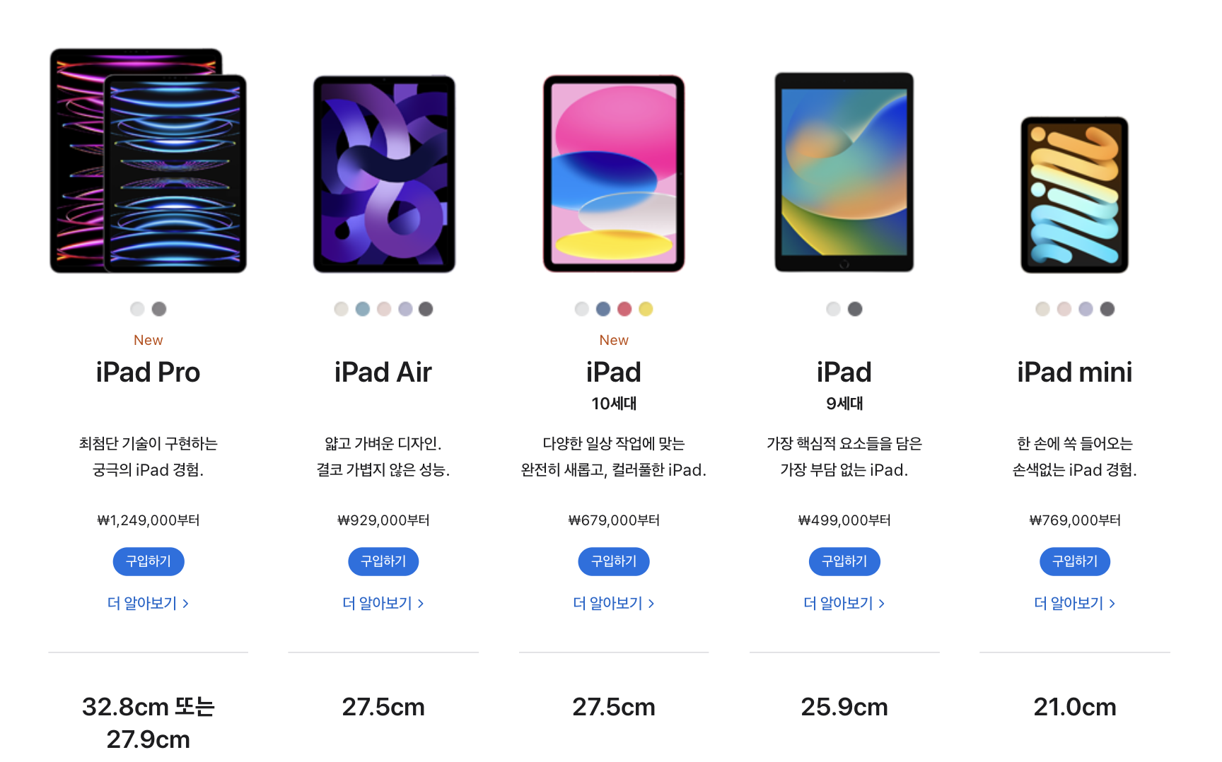 아이패드를 구입하는 목적 자체가 가벼운 프로그램을 돌리기 위한 용도기 때문에 아이패드에 40만원이 넘는 금액을 투자하기가 돈 낭비 처럼 보였다. 아이패드, 10세대만 해도 60만원에 육박하고, 아이패드 에어 5는 80만원이 넘었다. 과감히 아이패드 9세대로 선택.