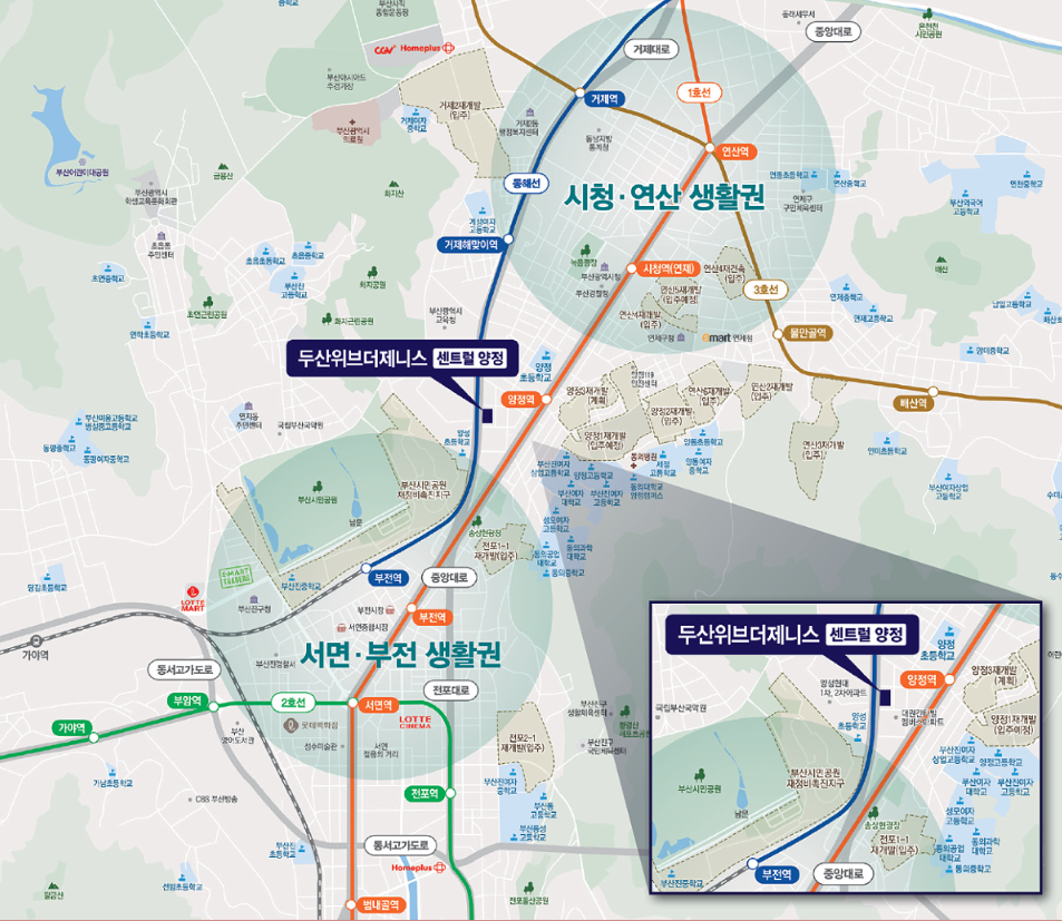 연양라인으로 개발이 진행되고 있는 양정 1,2,3 구역 재개발과 연산 2,3,6 구역 재개발로 인해 인근지역에 많은 공급이 이뤄질 것이고, 주거 인프라에 대한 개선이 확실히 있을 것으로 보입니다.