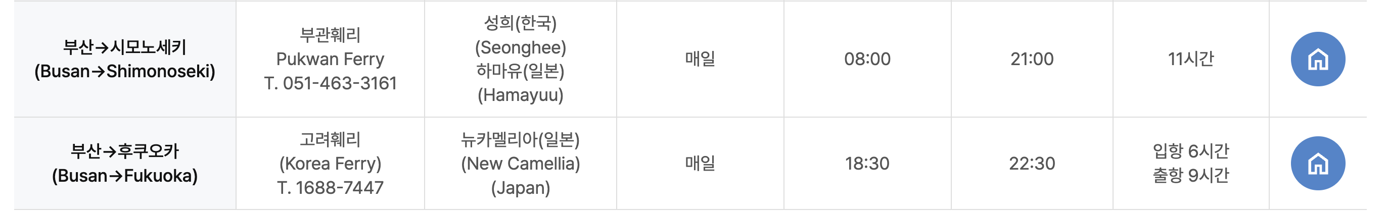 - 부산 ~ 시모노세키 - 부관훼리 선사 (https://www.pukwan.co.kr/)