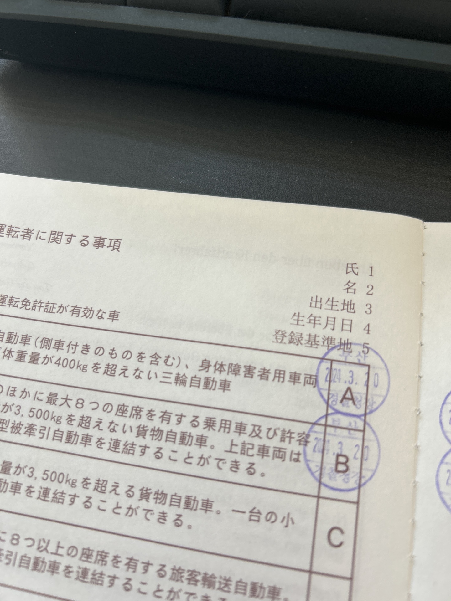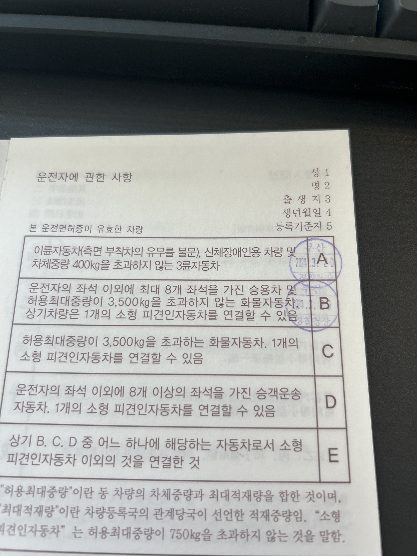 저는 1종 보통 면허와 2종 소형 면허 2개가 있어서 A,B 체크가 다 되었습니다.