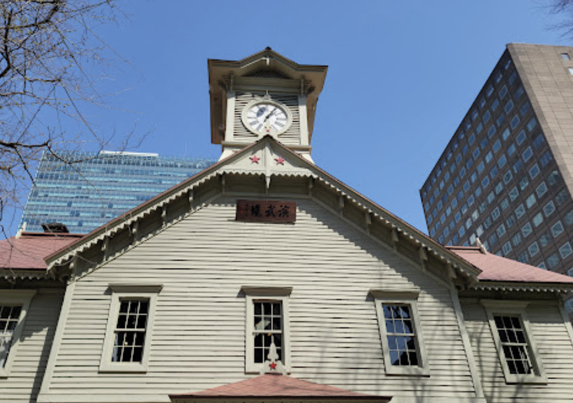무려 1878년에 지어진 목조 건축물입니다. 지어진지 140년이 다되어가지만 아직도 정시마다 소리가 울립니다. 여행을 가신다면 정시 기다렸다가 삿포로 시계탑이 들려주는 소리를 듣고 오는 것도 좋은 경험이 될 수 있습니다. 자세히 보면 시계탑에 붉은 별이 박혀있는데요, 삿포로 맥주에 들어있는 그 별과 같은 의미를 담고 있습니다. 별의 의미는 북극성.