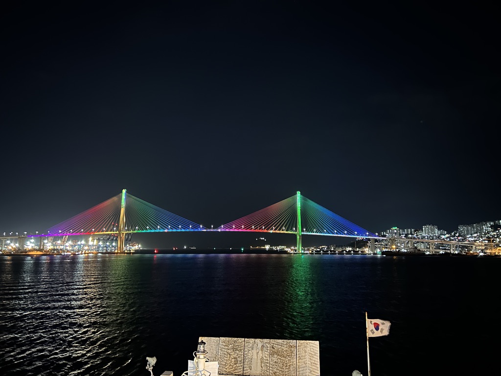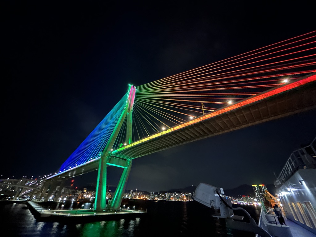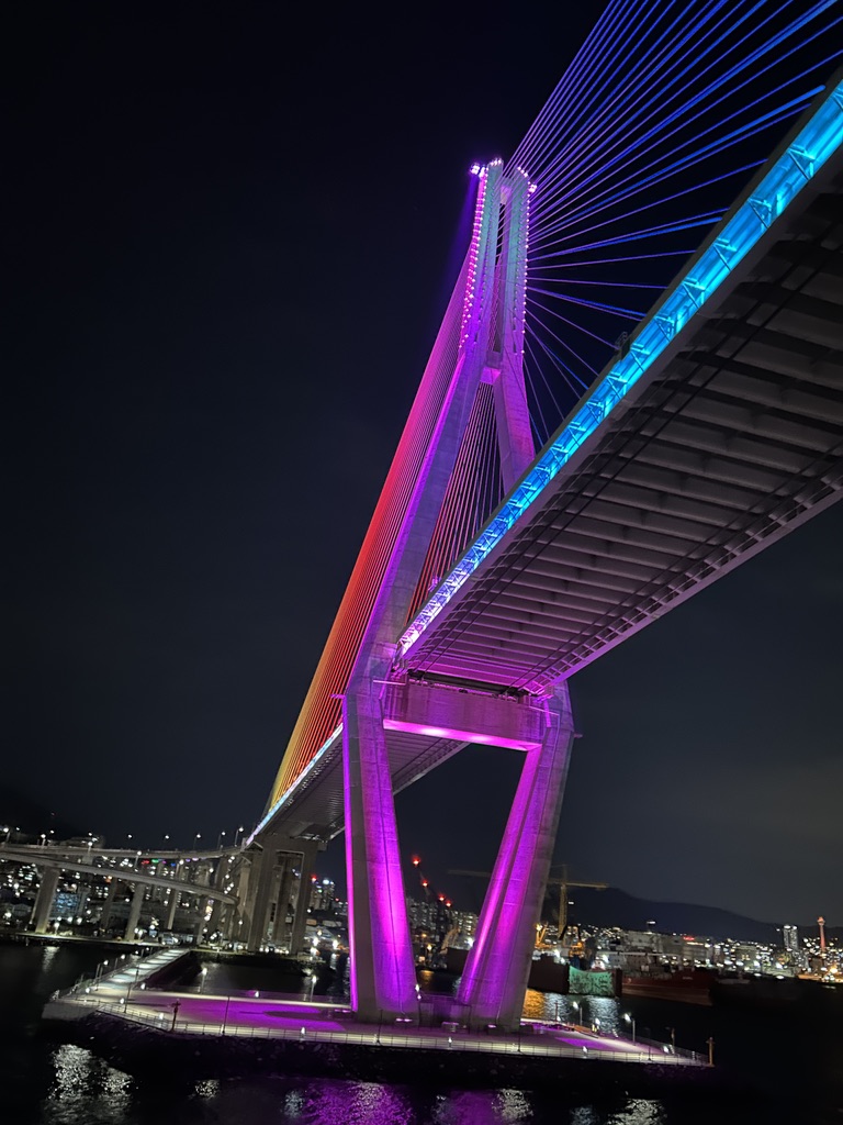 이름 그대로 레인보우 브릿지의 위용을 자랑합니다. 가까이서 보니 참 예쁜 다리네요. 영도와 남구를 이어주는 다리를 위에서 타보기는 많이 했는데, 가까이서 보는 경우는 많이 없어서 더 예뻐 보이는 것 같습니다.