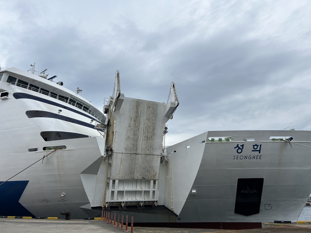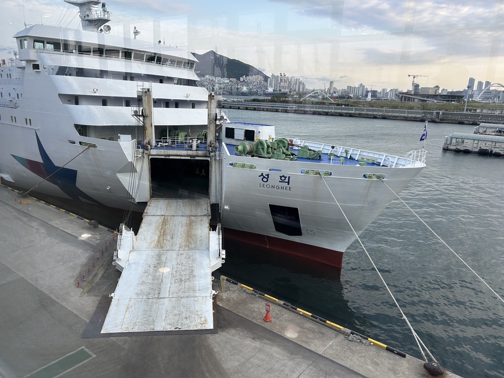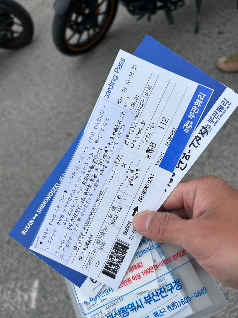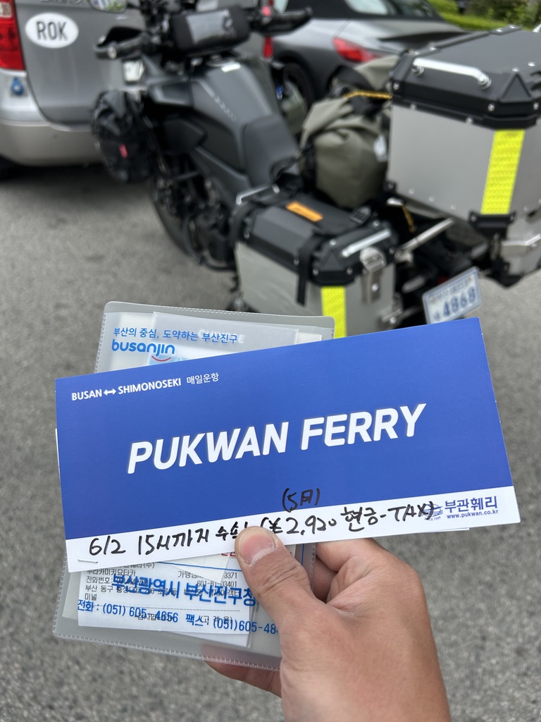 부관훼리는 배가 2개의 종류가 있는데 이번에 필자가 타고갈 배는 성희호 입니다. 세월의 흔적은 무시할 수 없지만 꽤나 큰 배고 안에 편의시설들은 없는 것 빼고 다 있어서 시모노세키까지의 여정을 안락하게 보낼 수 있습니다. 주차를 하고 임시수출입신고서 작성을 하고 요금 1만원을 지불하고 나오면 일단 바이크 적선 준비는 완료가 됩니다.