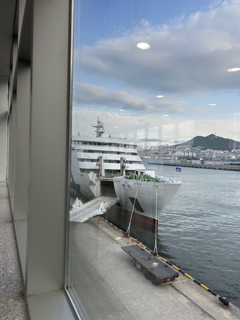 출국장으로 걸어가다보면 오늘 일본으로 타고 갈 성희호가 보입니다. 위에서 보니 확실히 큰 배군요.