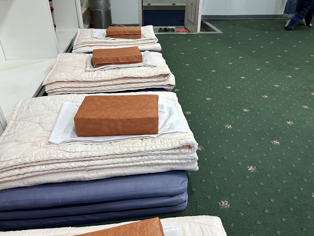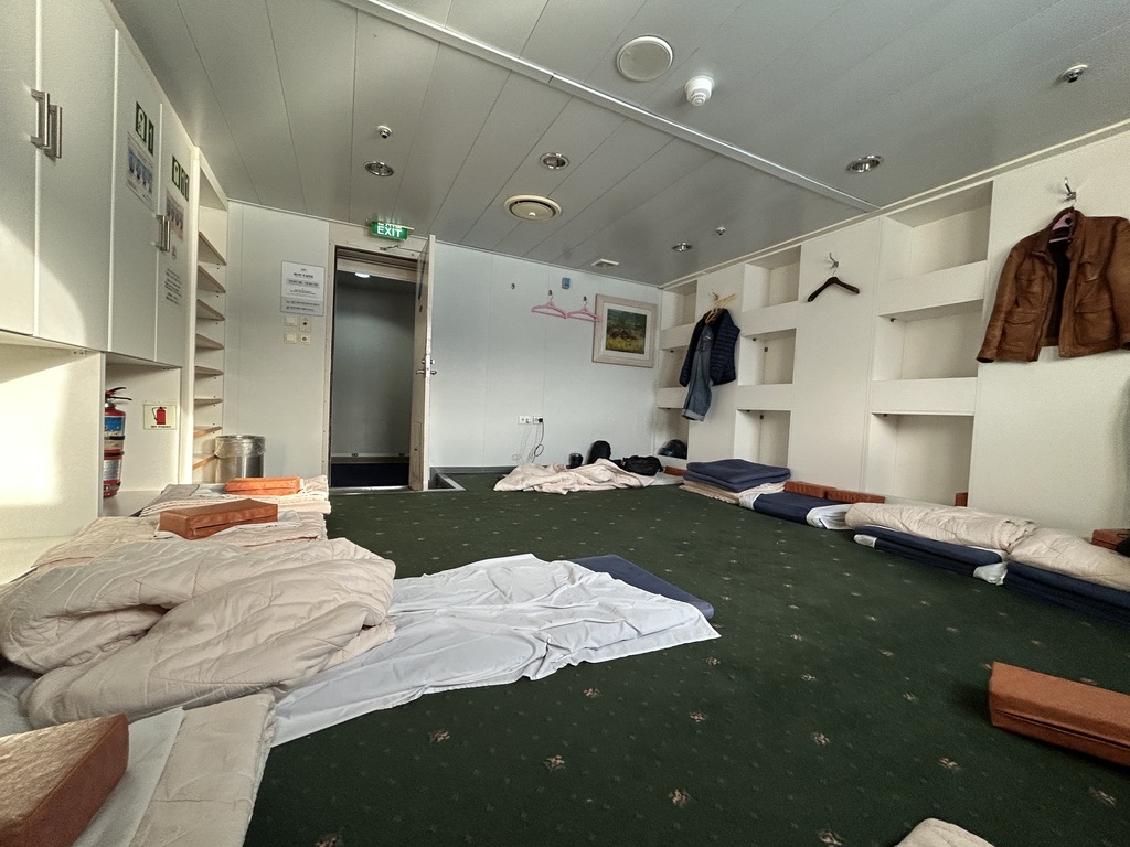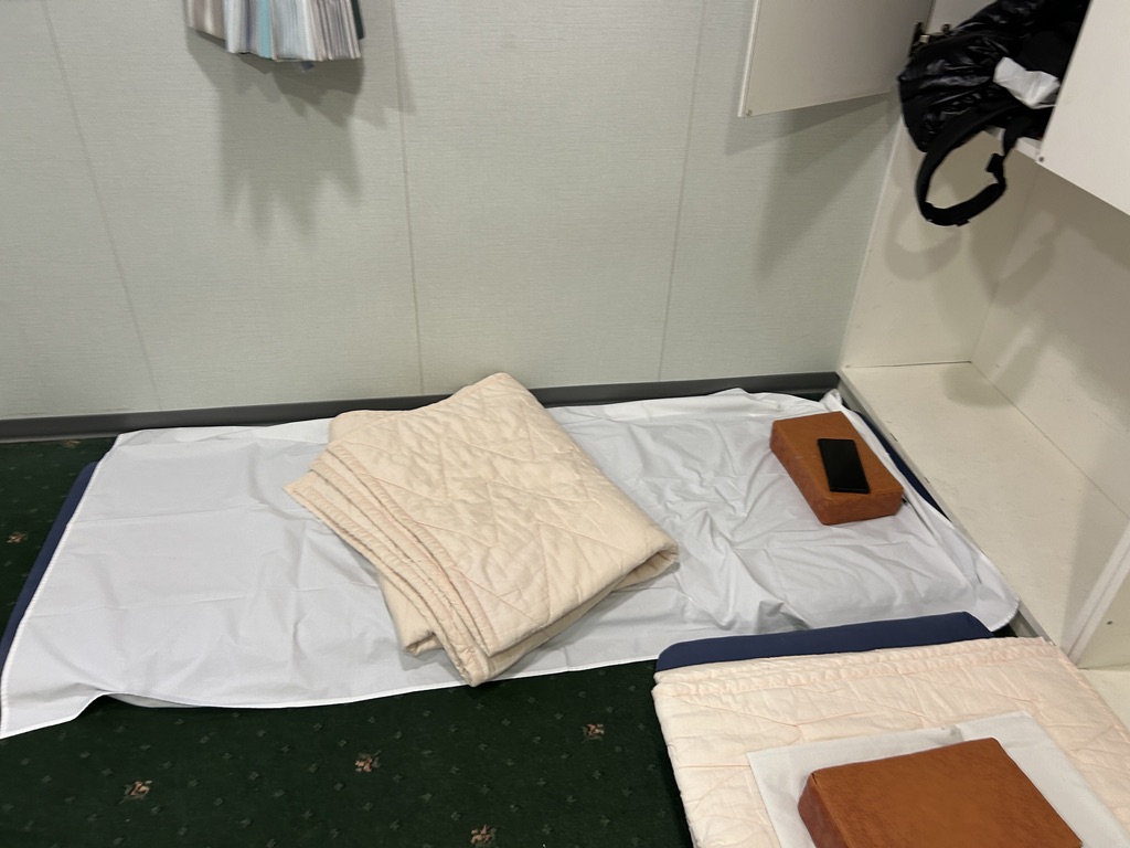 사람이 쉬는 스탠다드 룸은 총 11명이 쉴 수 있는 공간입니다. 이렇게 군대에서 관물대 처럼 생긴 곳에서 1박을 합니다.