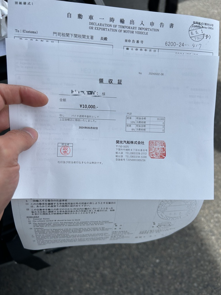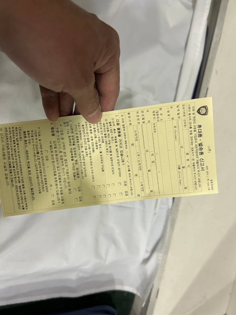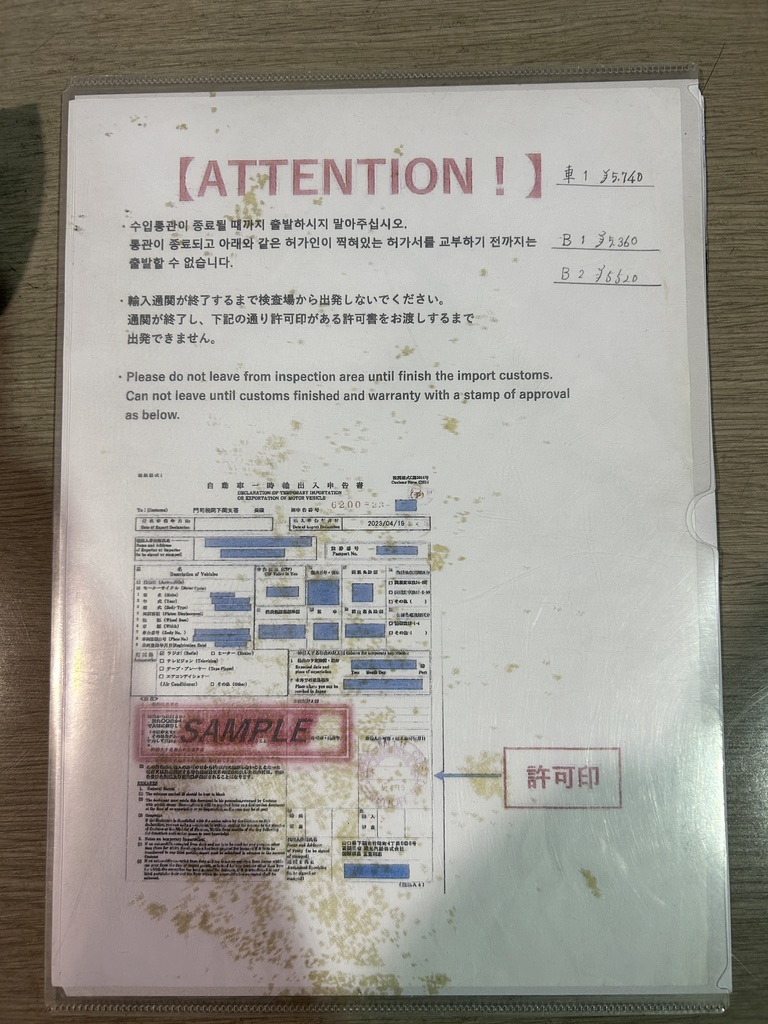 일본 직원들이 와서 짐검사를 간단하게 합니다. 아주 빡시게 하지도 않습니다. 하지만 드론은 들고가는게 금지되어있는지 드론 있냐고 계속 물어봅니다. 이 짐 검사할 때 국제번호판과 ROK 국가식별코드 스티커를 차량에 붙여주면 됩니다. 임시수출입은 비엔나 협약에 가입되어 있는 나라에서 간단하게 수출입 절차를 간소화한 건데요, 이 때 한국 번호판을 국제번호판으로 가리면 안됩니다. 한국번호판은 그대로 놔두고 한국어를 읽지 못하는 현지인을 위해 영어로 된 국제번포한을 옆이나 밑에 추가로 붙여야 합니다. (사실 뭐 그렇게 빡시게 검사를 하지도 않고, 세관 직원들도 별 말은 없습니다만 협약 사안상으로 그렇습니다.)