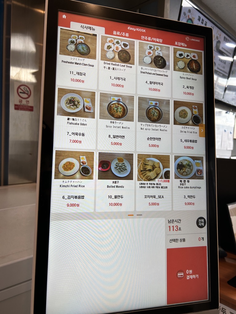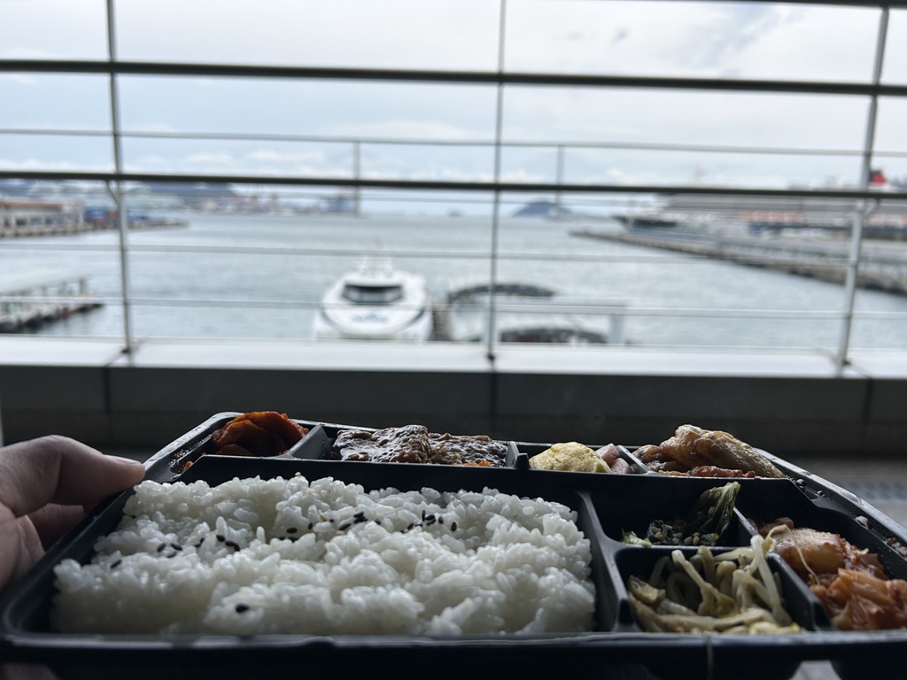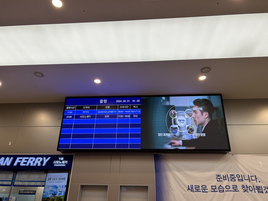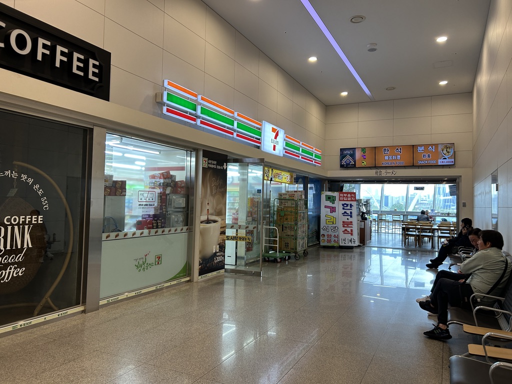 이렇게 까지 하면 시간이 한 4시 30분 정도 됩니다. 3시 부터 시작했으니 거의 1시간에서 1시간 30분 정도 걸렸습니다. 이제 다시 사람은 여객터미널로 올라와서 5시 30분 까지 대기를 합니다. 그 전에 배 안에서 밥을 먹어도 되고 쿠팡이츠로 식사를 시켜서 가져갈 수도 있습니다만 나홀로 여행객은 그냥 편의점에서 먹기로 합니다. 터미널 안에 식사를 할 수 있는 식당도 있습니다.