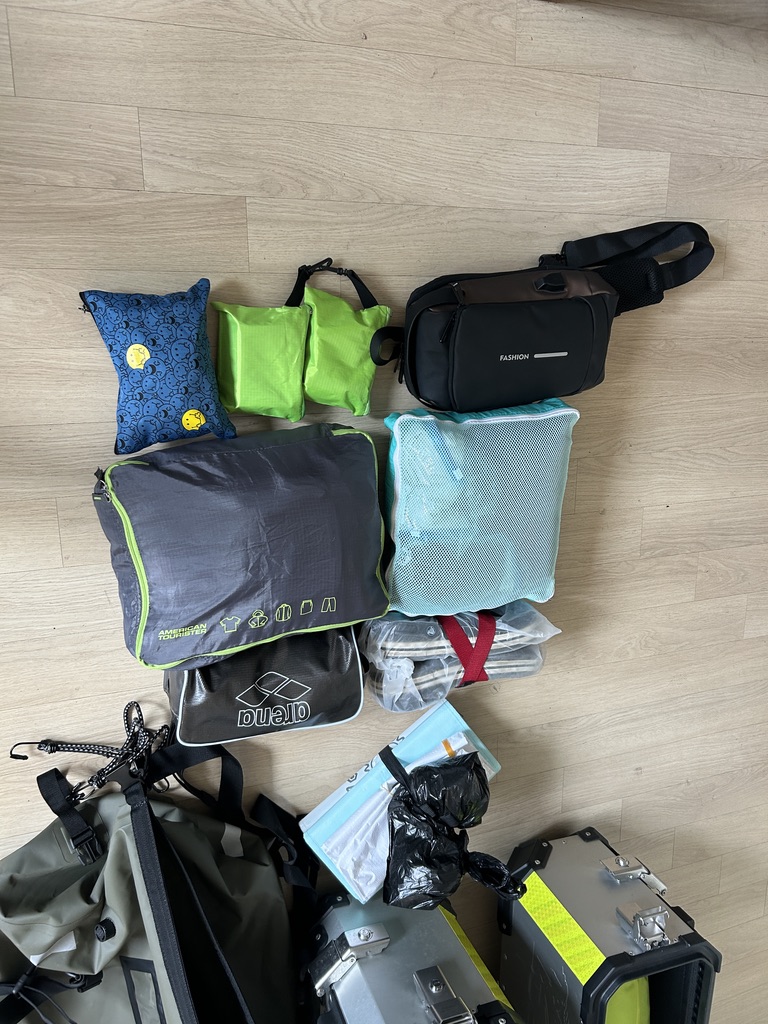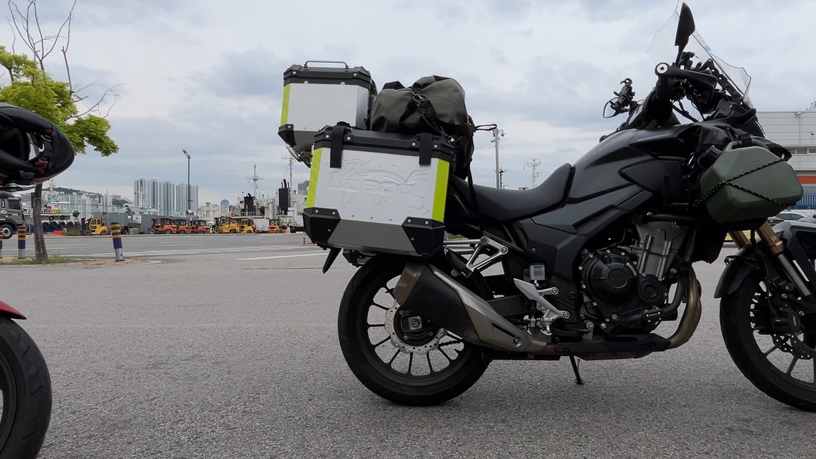 부산에서 출발하기 전에 오토바이에 실을 짐들을 챙겨봅니다. 혼자 가는 여행이기 때문에 짐이 그렇게 많지는 않습니다. 고작 한달 짜리 여행이기 때문에 간단한 짐들만 챙겨서 떠나봅니다.
