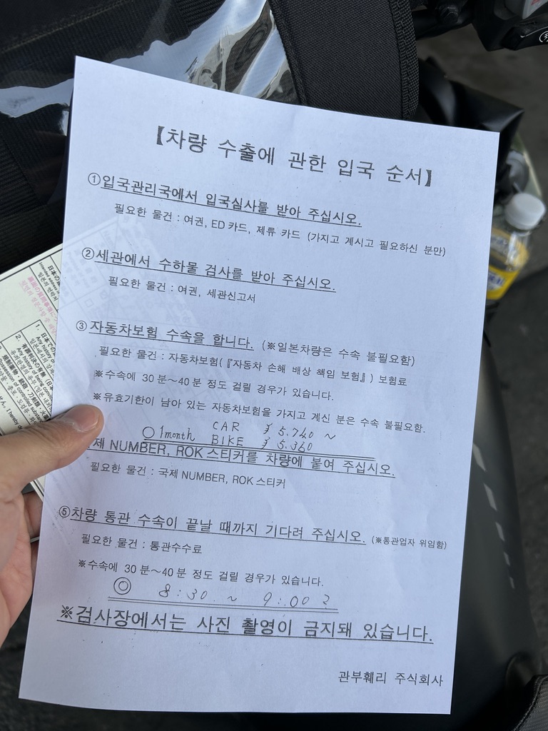 일본 오토바이 일주 여행 준비 배편 예약 및 서류 준비
