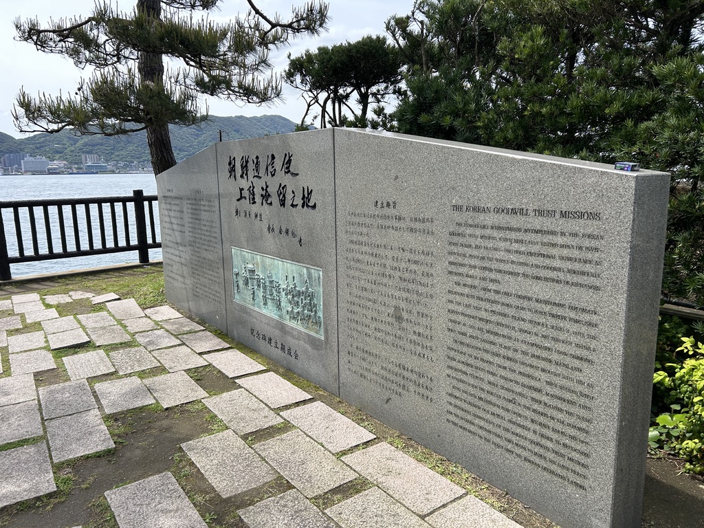 아카마 신궁 바로 앞으로는 조선통신사가 쇄국정책을 펼치고 있던 일본과 교류했던 역사를 기념하는 비가 있습니다. 하지만 도로에서 조금 들어와야 있고, 약간 숨어있는 느낌입니다.