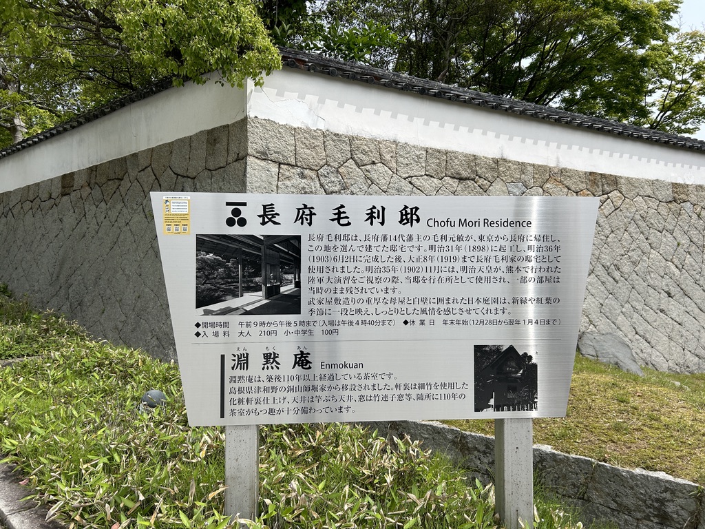 아카마신궁 바로 옆으로는 시모노세키 조약이 이뤄졌던 유적지가 있지만 골든위크 기간에는 오픈이 되어 있지 않았습니다. 다음으로 가볼 곳은 초후 모리 저택입니다. 헤이세이 36년에 지어진 저택으로 메이지천황의 별궁으로도 사용되었던 저택인데, 일본 전통적인 뜰과 정원을 볼 수 있는 곳입니다.