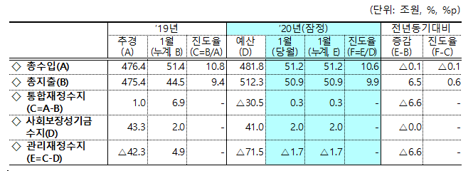 금번 코로나19발 주요국 증시폭락은 유동성위기 보다는 수요세력의 붕괴가 주된 이유입니다. 외부경제활동이 정지되고, 현금유통 여건이 대폭 제한되면서 수요자가 증발된 상황입니다. 투자자들은 시중의 풍부한 유동성이 공급되어 있는 경제시장에서 추가적인 금리인하의 통화정책의 유효성에 대해 회의적인 시각입니다. 현재는 수요진작을 위하여 특정 경제참여자들을 목표한 재정정책이 필요한 시점입니다. 정부는 현재 추가경정예산안을 포함한 재정정책에 focus를 두고 재정집행에 집중하고 있습니다. 정부 총지출은 20.01 6.5조원 증가한 50.9조원을 기록하고 있습니다. 20.01 재정수지는 전년동월비 흑자폭 감소(통합재정수지 6.6조원, 관리재정수지 6.6조원 증가) 추세를 보이고 있습니다. 또한 집행실적은 20년 조기집행 관리사업 1월 실적을 33.3조원으로 연간계획 대비 10.9% 집행 하였습니다.