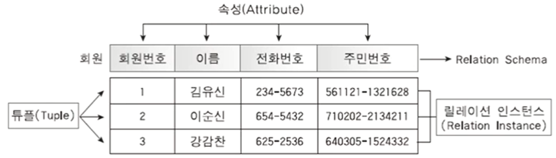 - 데이터 간 관계를 나타내는 표 자체를 릴레이션이라고 한다.