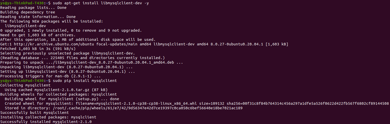 명령어 $ sudo pip install mysqlclient