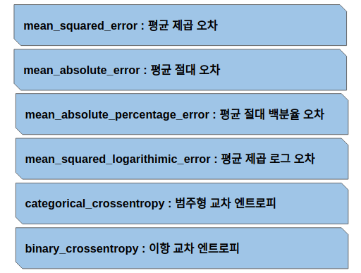 keras에서 사용하는 오차 함수의 종류는 크게 6가지다.