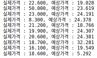 print("실제가격 : {:.3f}, 예상가격 : {:.3f}".format(label, prediction))