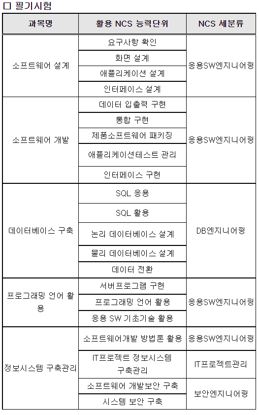구분되어 진행된다. 필기는 소프트웨어 설계,