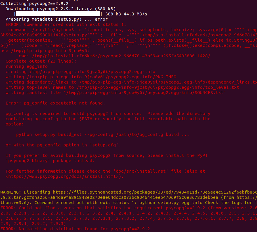 설치하는 과정에서 분명 psycopg2 설치 에러가 발생한다.