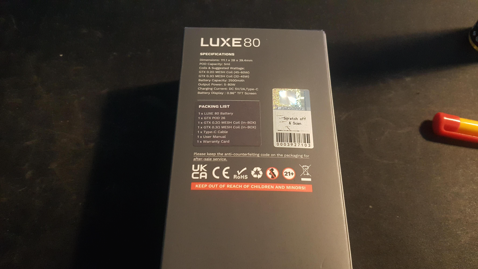 박스를 까보니 간지나게 Vaporesso 럭스80 로고가
