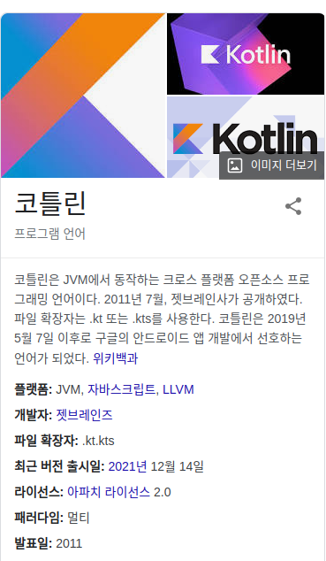 이제 모바일 애플리케이션을 개발할 때는 Flutter나 React를 사용해서 안드로이드와 IOS를 동시에 개발하는게 대세로 자리잡고 있다, 그럼에도 네이티브 애플리케이션으로 안드로이드 프로젝트를 생각하고 있다면 JAVA보다는 Kotlin이 대안이 될 수 있을 것이다. 구글에서 Kotlin을 인정한 것은 이유가 있을 것이다.