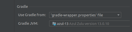 하단에 보면 Gradle에서 작동하는 JVM의 버전을 선택하게 되어 있다. 최초 JDK 18버전으로 설정되어 있었는데, 나는 JDK 13 버전을 사용하고 있다. 만약 선택항목에 13이 없다면 새로 설치해주면 된다.