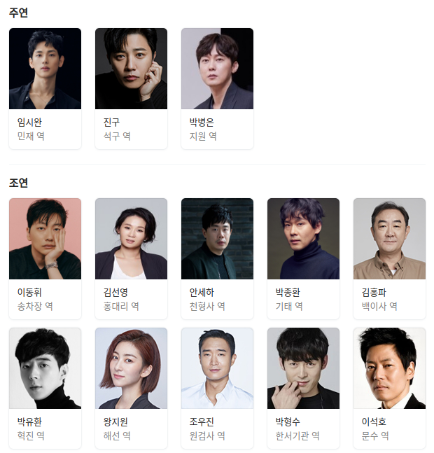 출연진 : 임시완, 진구, 박병은, 이동휘, 김선영, 안세하, 박종환, 김홍파
