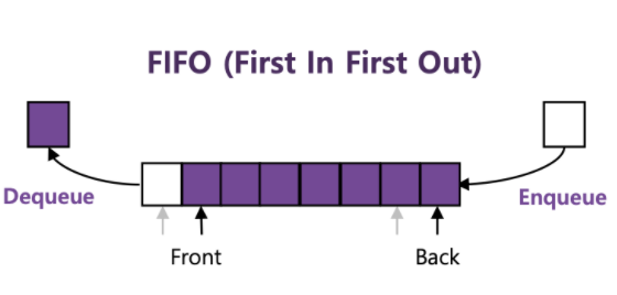 큐(Queue)는 대표적인 FIFO 형식의 자료구조다. 가장 먼저 삽입된 데이터가 가장 먼저 출력되는 자료구조로, 프린터 스풀이나 입출력 버퍼에 많이 활용된다.