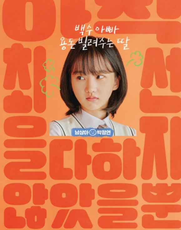 남상아(박정연)은 남금필의 딸이다. 백수인 아빠한테 용돈도 뜯기고, 방황하는 남금필의 고민을 들어주는 착한 딸이다. 착하지만 불쌍하고 마음 따뜻한 캐릭터다.