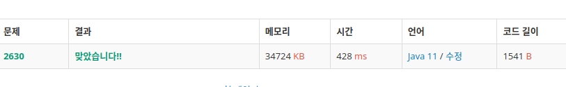 메모리를 3.4MB나 잡아먹었다. 시간은 428ms로 맞았습니다!