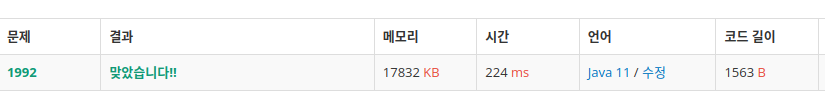 224ms, 17MB 메모리를 사용해서 맞았습니다!