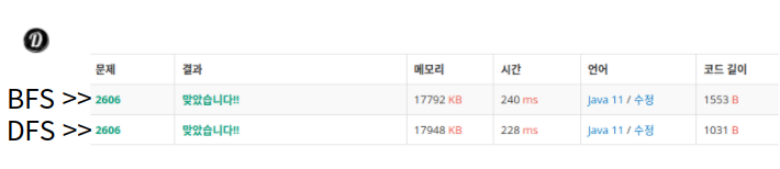 백준 2606 결과