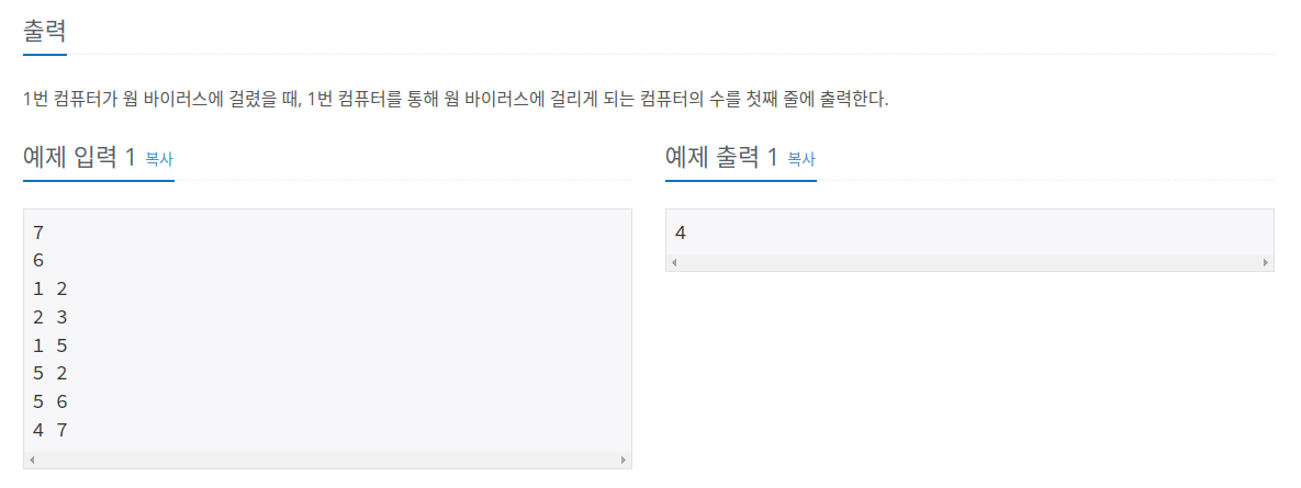 백준 1260 문제는 DFS와 BFS알고리즘으로 노드 탐색 시 노드의 경로를 출력하는 문제였다. 하지만 백준 2606 문제는 연결된 지점의 노드의 갯수만 카운팅하면 되는 단순한 문제다.