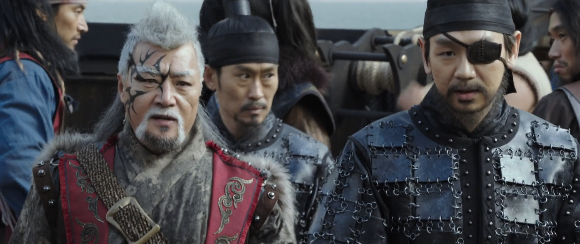 해적 : 바다로 간 산적에서 조연들의 역할이 상당히 크다. 해적 출신의 산적 철봉(유해진)은 고래가 엄청 크고 새끼를 낳는다고 바다에 대해 설명하지만 바다에 한번도 나가보지 않은 산적들은 철봉을 무시한다. 분명 산적인데 스님인 박철민, 국새를 잃어버린 장본인인 한상질(오달수), 산적질에 잔뼈가 굵은 춘섭(김원해)의 케미가 넘쳐 흐른다고 보면 된다.