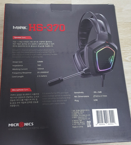 마이크로닉스 MANIC HS-370 7.1CH 노이즈캔슬링마이크 헤드셋