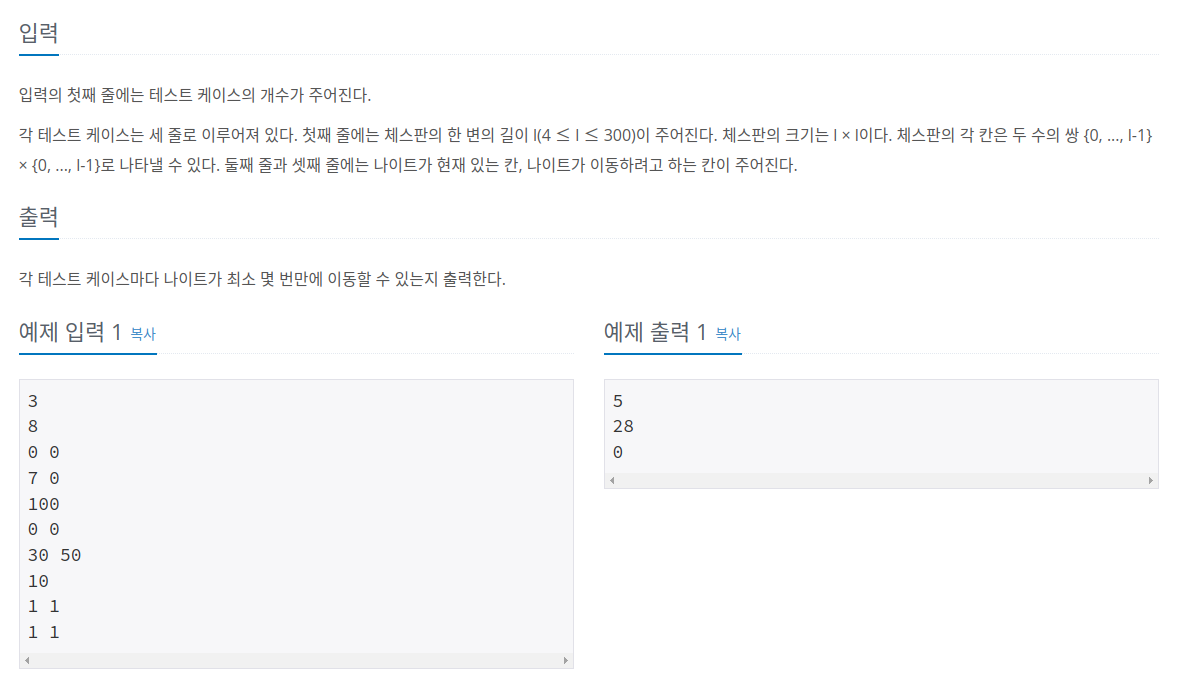 백준 7562 나이트의 이동 알고리즘