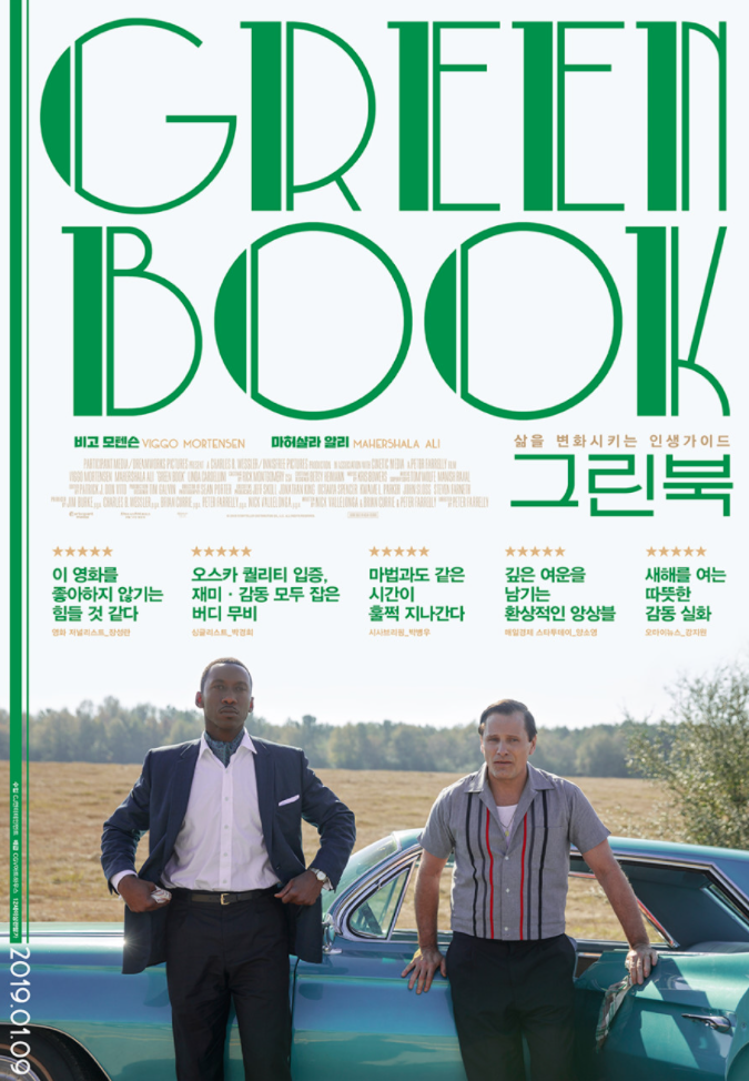 영화 그린북은 2019년 1월 9일 한국에 상영했던 영화다. 미국에서는 2018년 11월 21일에 개봉했었으며, 높은 작품성과 흥행성을 겸비하면서 제91회 아카데미 시상식 작품상, 각본상, 남우조연상, 편집상과 토론토 국제 영화제 관객상 수상 등 많은 상을 휩쓸었던 영화다.