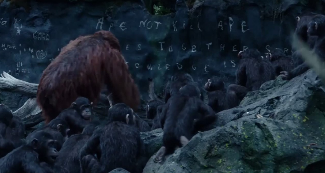결국 시저와 코바의 갈등은 유인원 내부의 분열로 이어졌고, 결국 코바 일당은 인간 마을을 공격하기 시작하면서 인간과 유인원 간의 본격적인 전쟁이 시작된다. 시저는 인간들과의 공존이 가능하다고 믿고 있으며, '집', '가족', '미래'를 말하면서 유인원과 인간의 공존을 이끌어낸다.