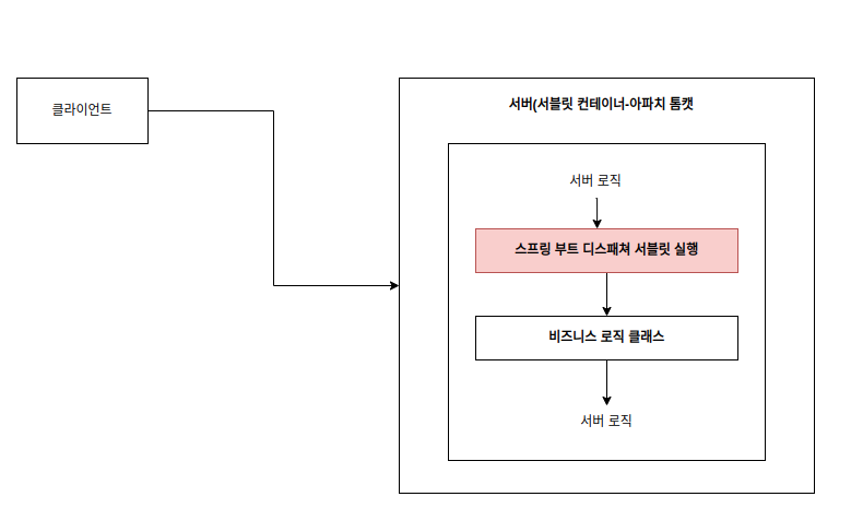 서블릿 컨테이너는 서버 프로그램의 일종이다. 개발자들이 할 일은 서블릿 엔진을 설치하고 비즈니스 로직이 어떤 요청에서 실행되야 하는지 세세하게 구성을 해줘야 한다. 서블릿 엔진이 이해하는 방식은 javax.sevlet.http.HttpServlet을 상속받는 클래스 방식이다.