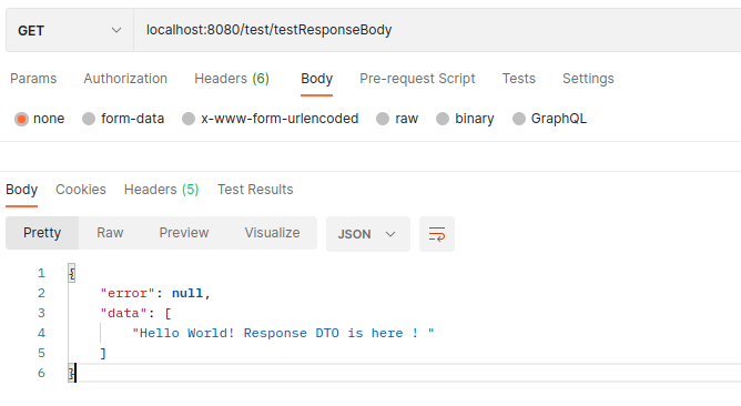 postman에서 localhost:8080/test/testResponseEntity로 GET 요청을 보내면 BODY는 동일한 값을 얻지만 반환코드에 따라서 반환 상태값이 달라지는 것을 볼 수 있다. @ResponseEntity는 Body 뿐만 아니라 Status와 Header를 조작할 때 사용한다.