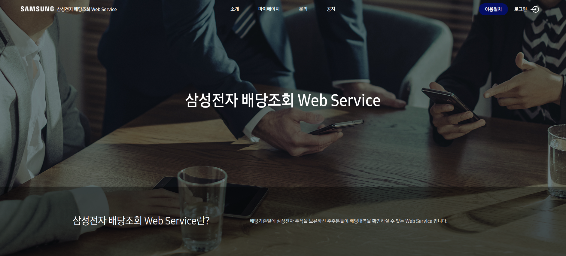 조회 회원가입 및 로그인이 필요합니다. 삼성전자 배당조회 Web Service란? 배당기준일에 삼성전자 주식을 보유하신 주주분들이 배당내역을 확인하실 수 있는 Web Service 입니다.