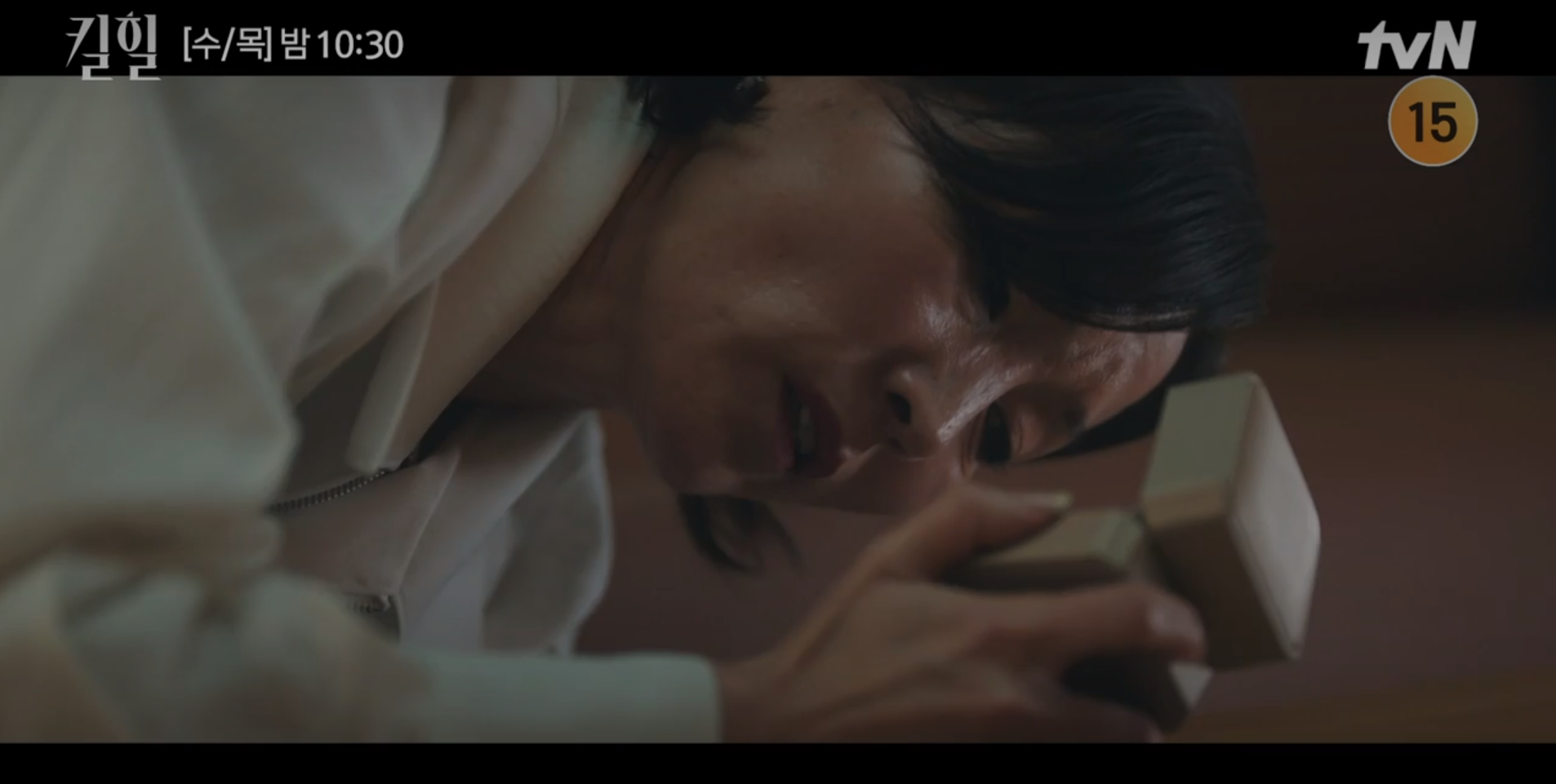 한편, 킬힐 8회에서는 옥선 내면의 모습을 보여주는 장면이 나옵니다. 국회의원 인국의 보좌관 중 거슬리는 행동을 하는 것을 보고 옥선은 음료를 머리에 부어버립니다. 자신의 욕망을 달성하기 위해서는 누가 누군지 전혀 보이지 않는 옥선입니다. 이런 캐릭터가 몇십년간 분노를 참고 복수를 기다리는게 소름돋네요.
