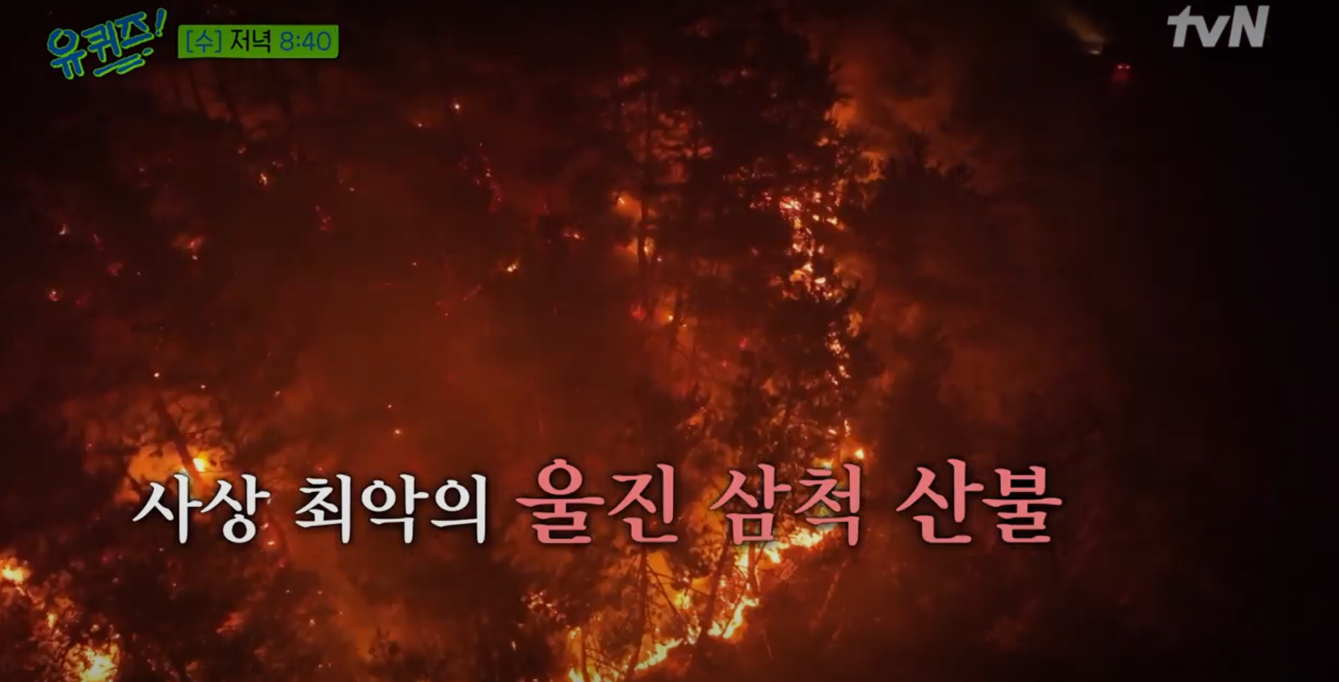 역대 최악이라는 말이 붙을 만큼 불은 사방으로 번졌고, 진화 현장에 투입된 인력들은 10일간 밤잠을 설쳐가며 산불은 진화했던 치열한 현장의 얘기가 공개됩니다. 무심코 버린 담배꽁초, 화기사용이 얼마나 큰 재앙을 불러오게 되는지 다시 한번 경각심을 가지게 되는 시간입니다.