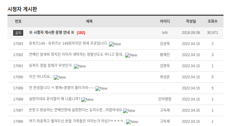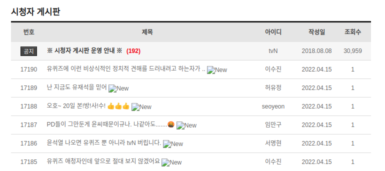 유퀴즈 윤석열 방송 날짜 시청자 게시판 폭발?